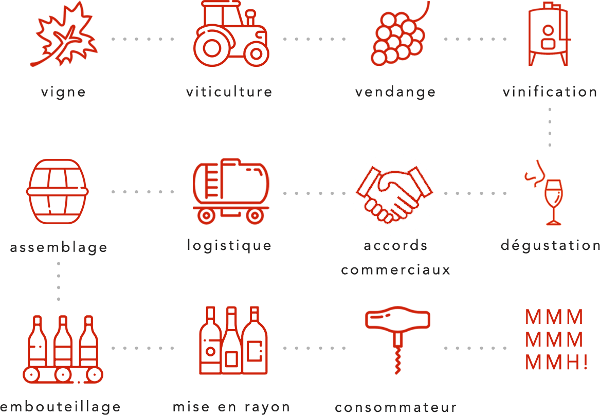 Nous pensons qu’il est essentiel d’adopter une approche holistique du vin et de son cycle de mise en marché afin de mieux cerner et mieux maîtriser les facteurs favorisant des relations commerciales saines et fiables.